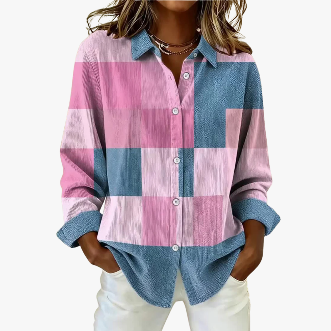 Paula – Cárdigan de punto a cuadros en tonos suaves